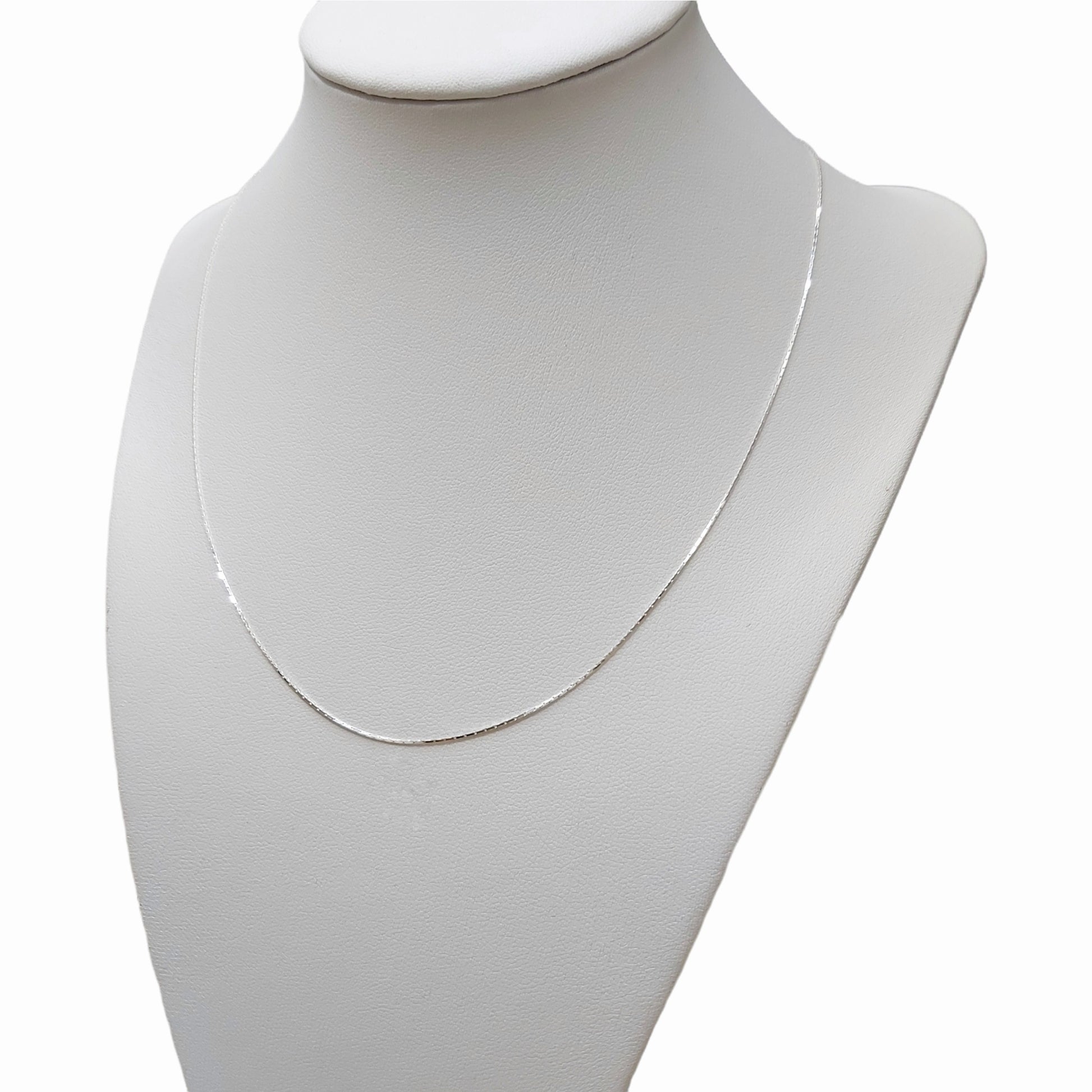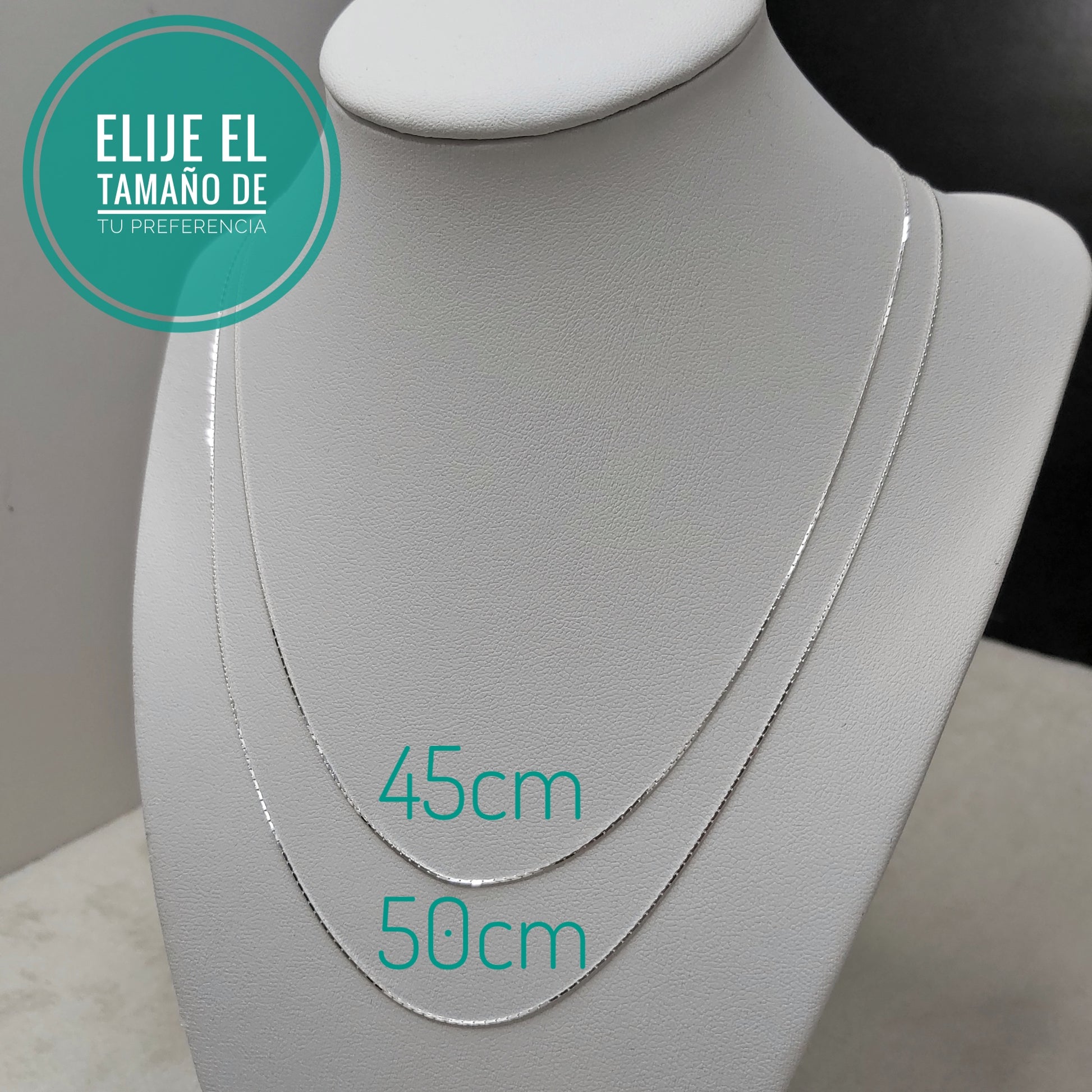 Cadena estilo Cobra elaborada en Plata 925, reconocida por su textura lisa y elegante que refleja la luz con un brillo uniforme. Disponible en 45 cm y 50 cm, es una pieza versátil y sofisticada, perfecta para usar sola o acompañar con colgantes delicados.