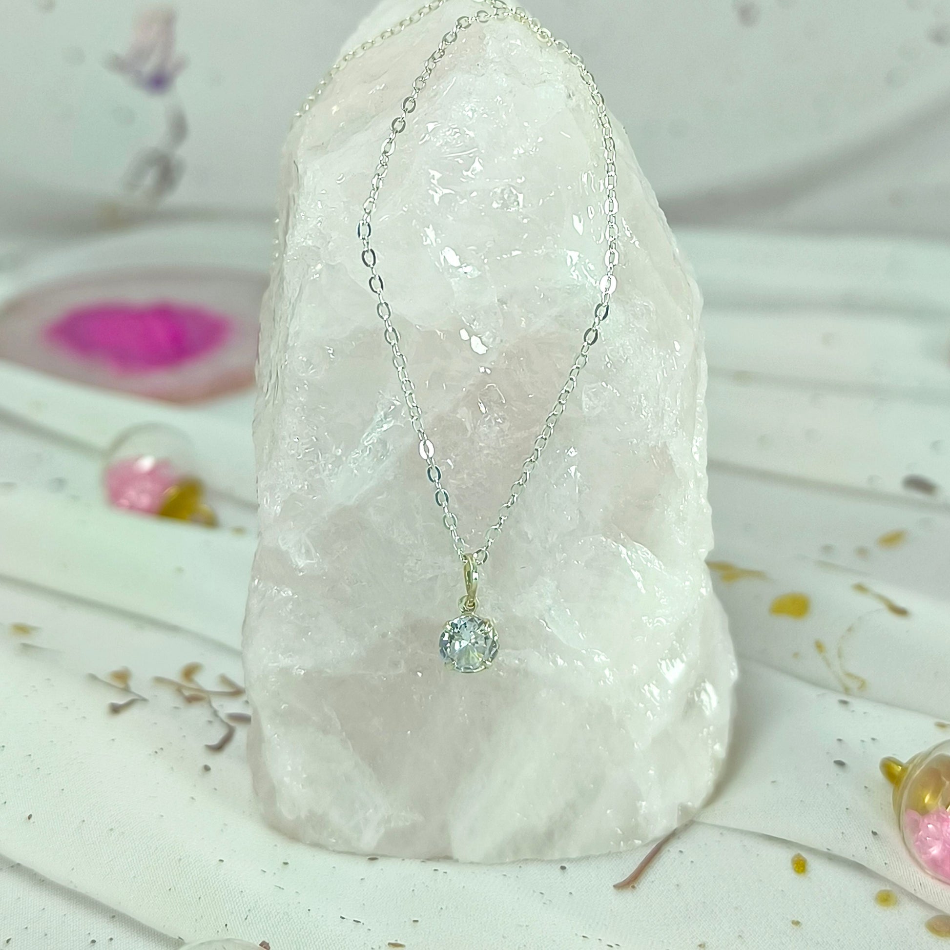 Collar Plata 925 Rolo 1MM + Colgante Punto De Luz 6MM