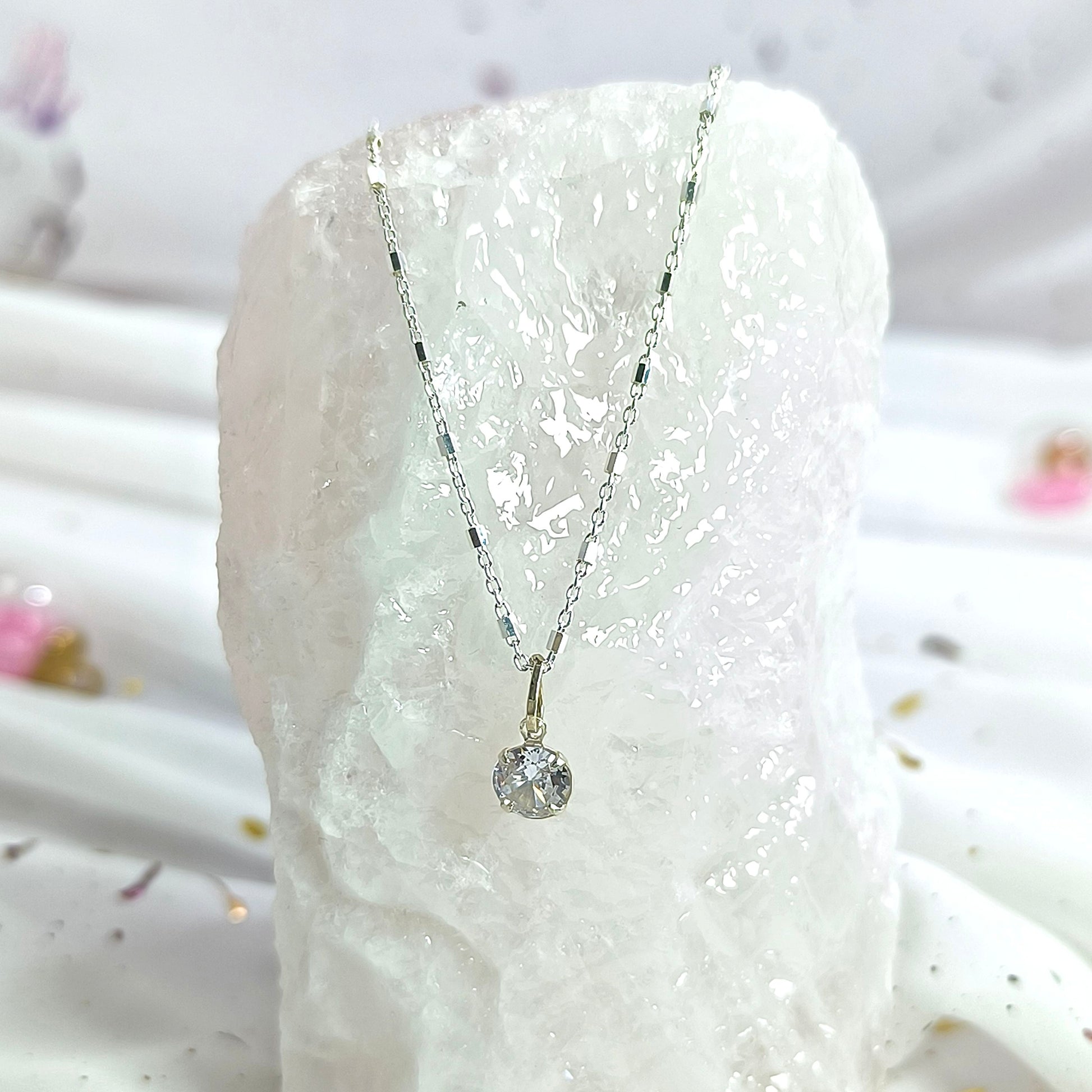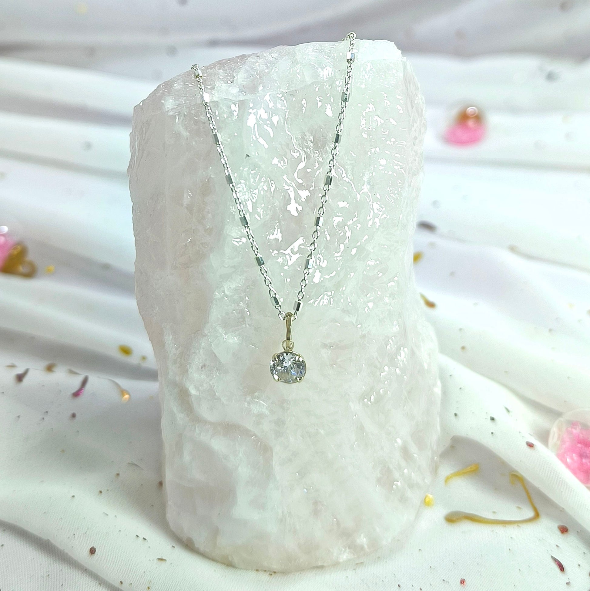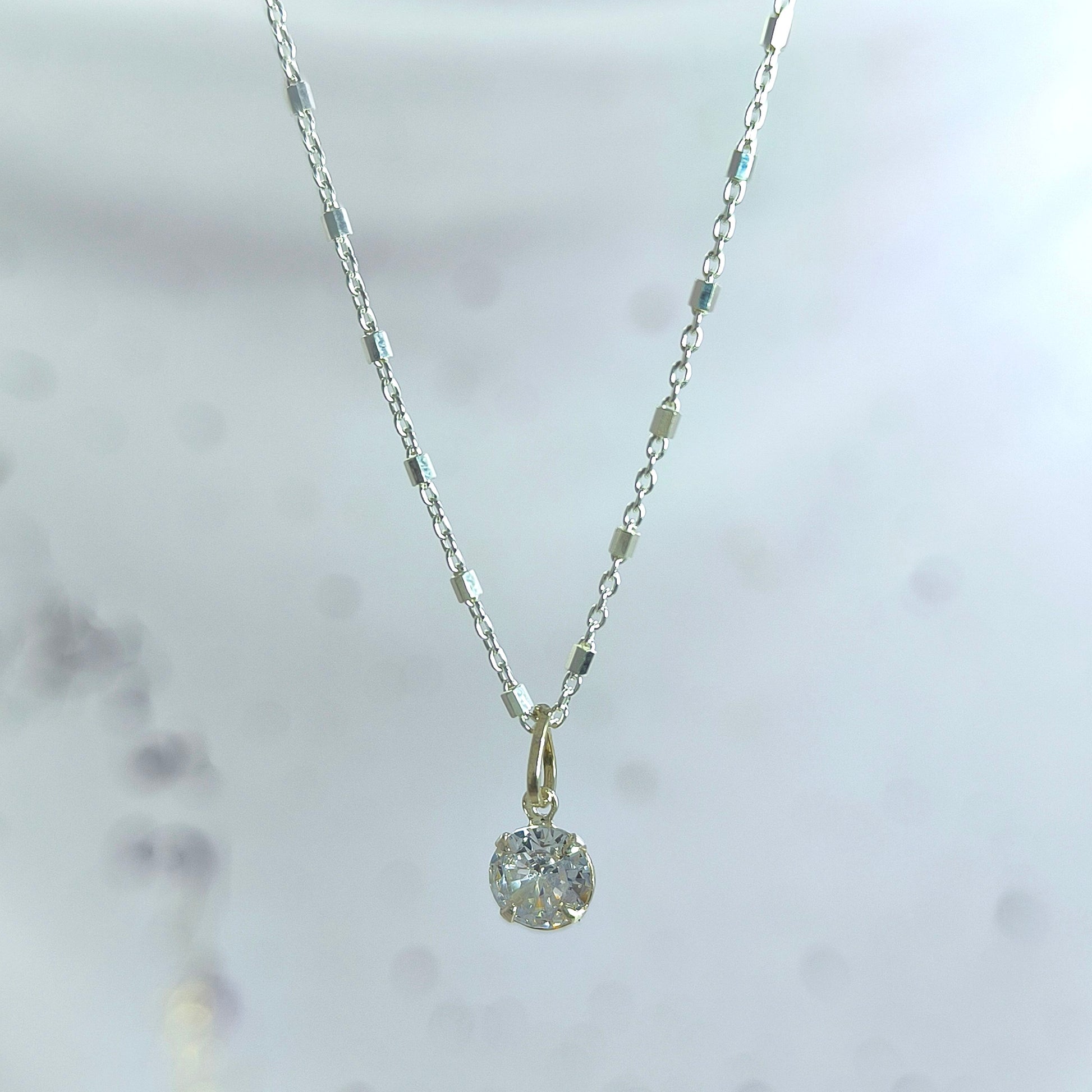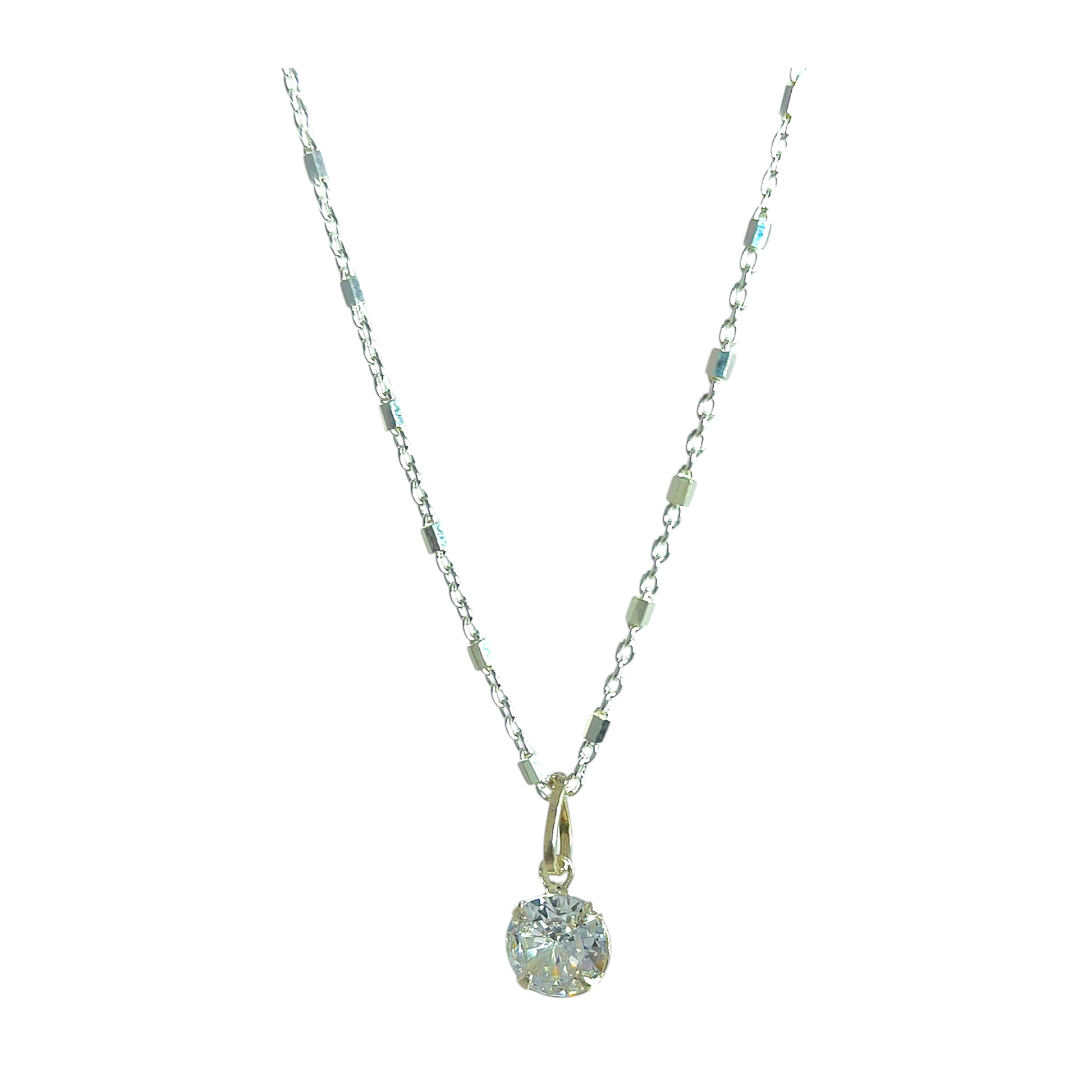 Collar Plata 925 Rolo Tradicional con Hexágonos 1.4MM + Colgante Punto De Luz 6MM