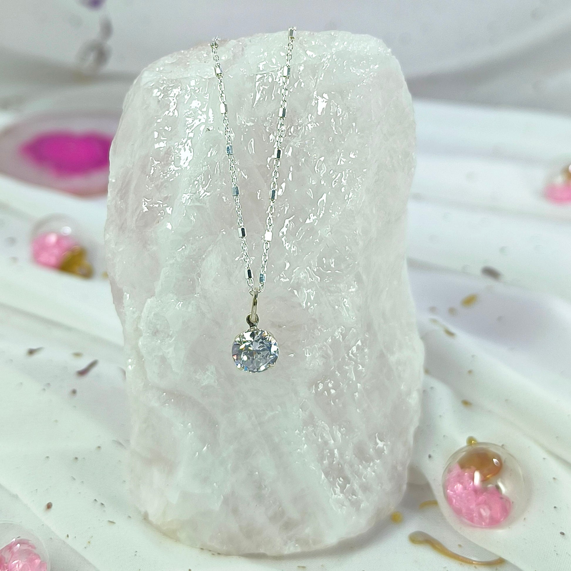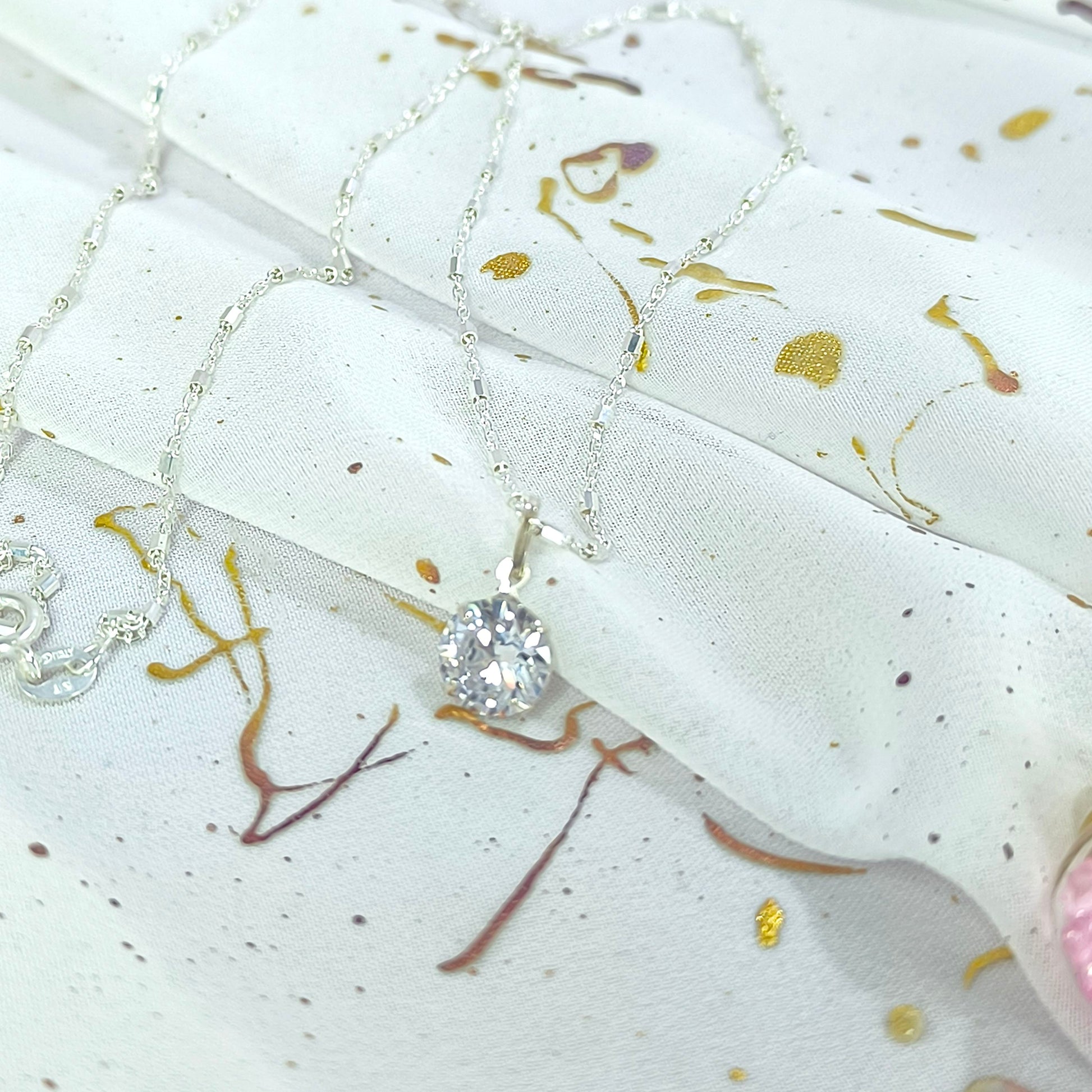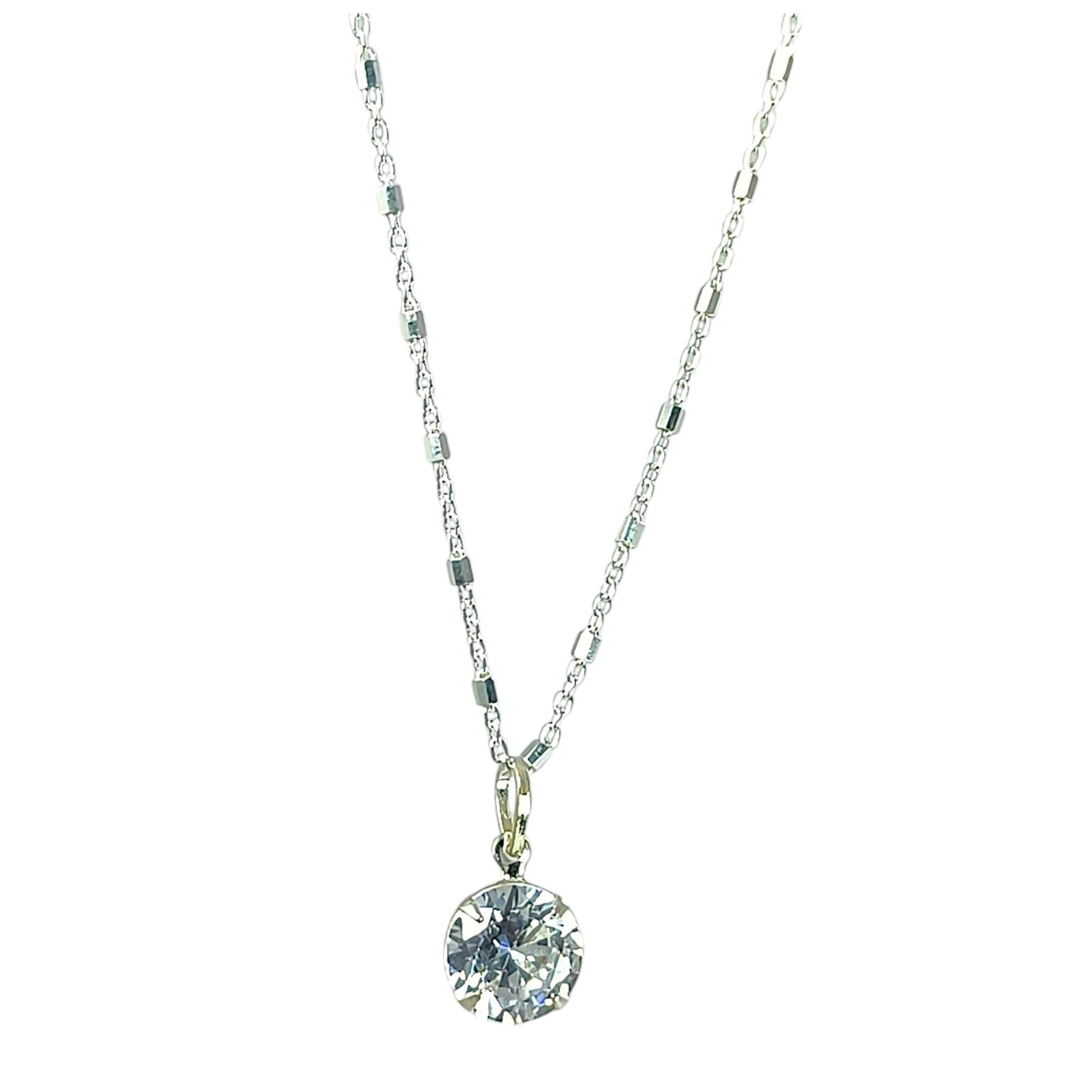 Collar Plata 925 Rolo Tradicional con Hexágonos 1.4MM + Colgante Punto De Luz 8MM