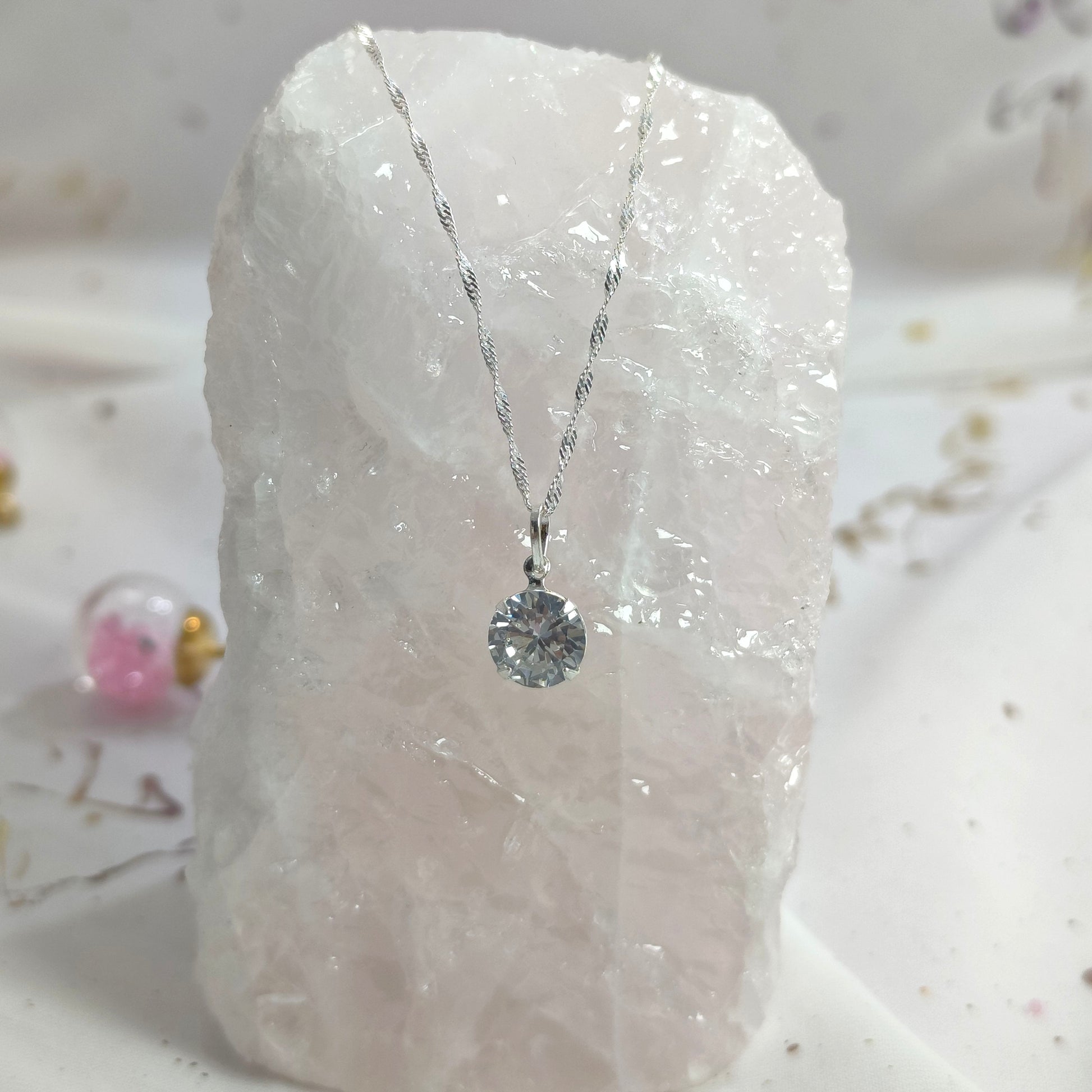 Collar Plata 925 Singapur 1,5MM + Colgante Punto De Luz 8MM