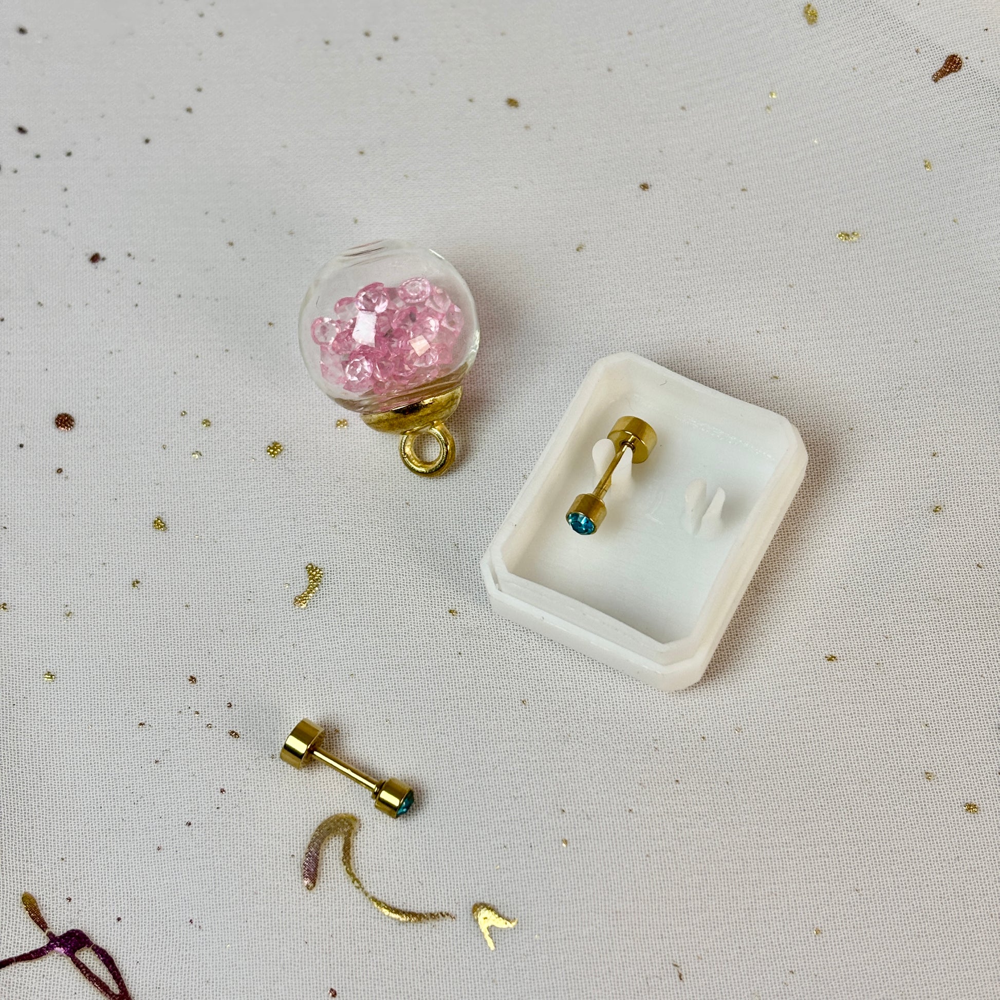 Mini Aros Acero Quirúrgico Dorado Circón Azul 3MM - Tope Tornillo