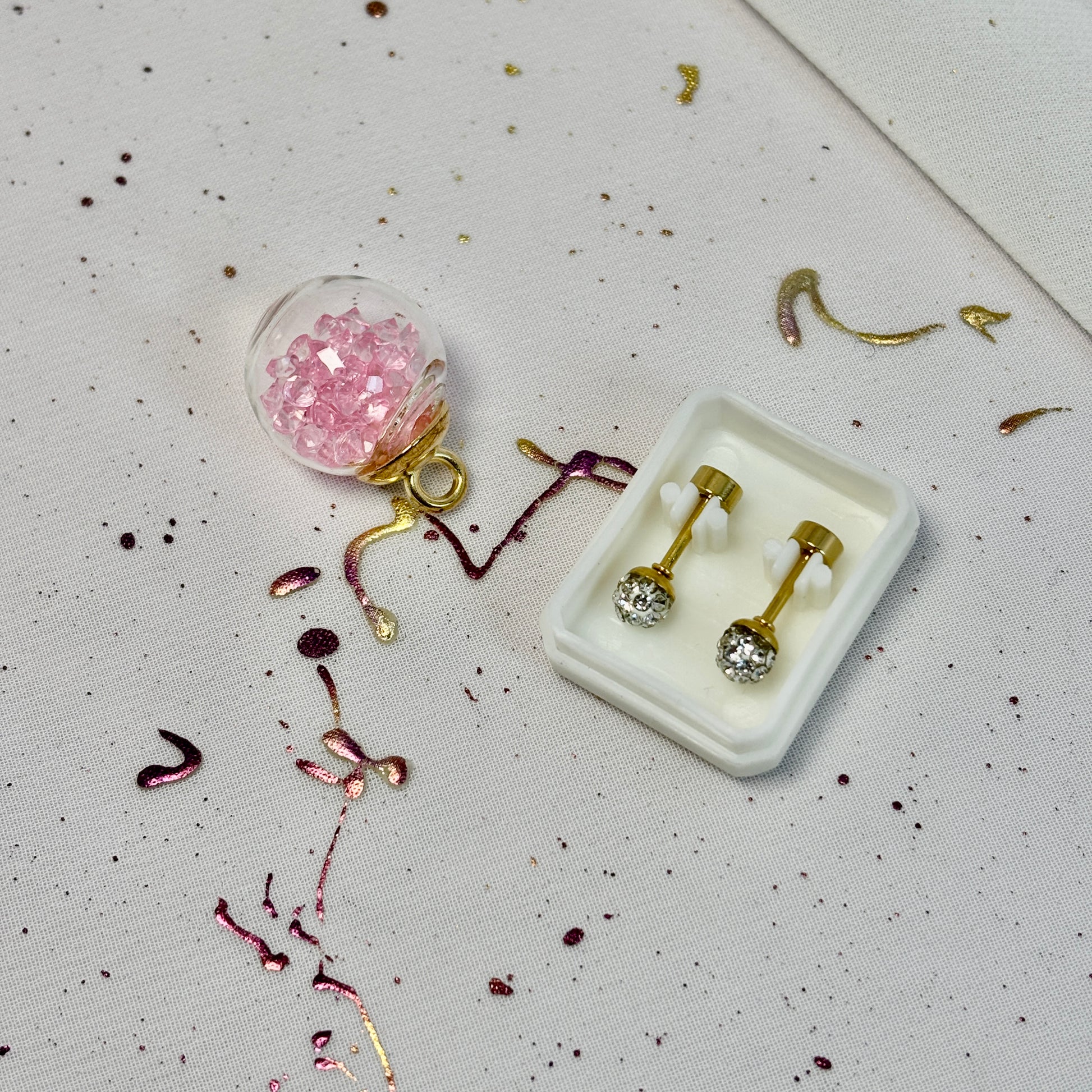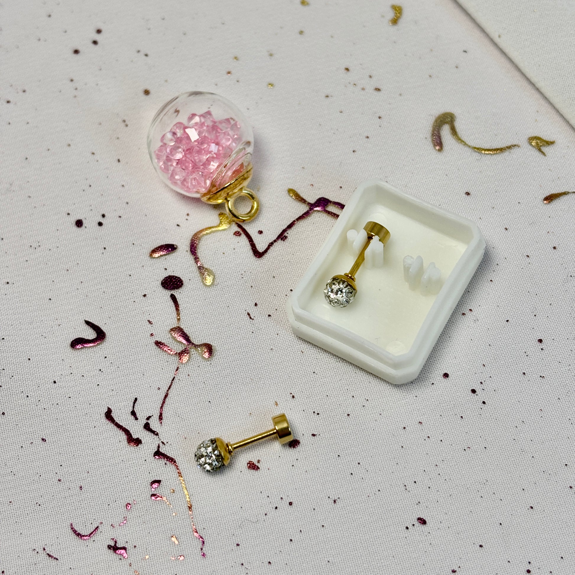 Mini Aros Acero Quirúrgico Dorado Esfera Circón 4MM - Tope Tornillo