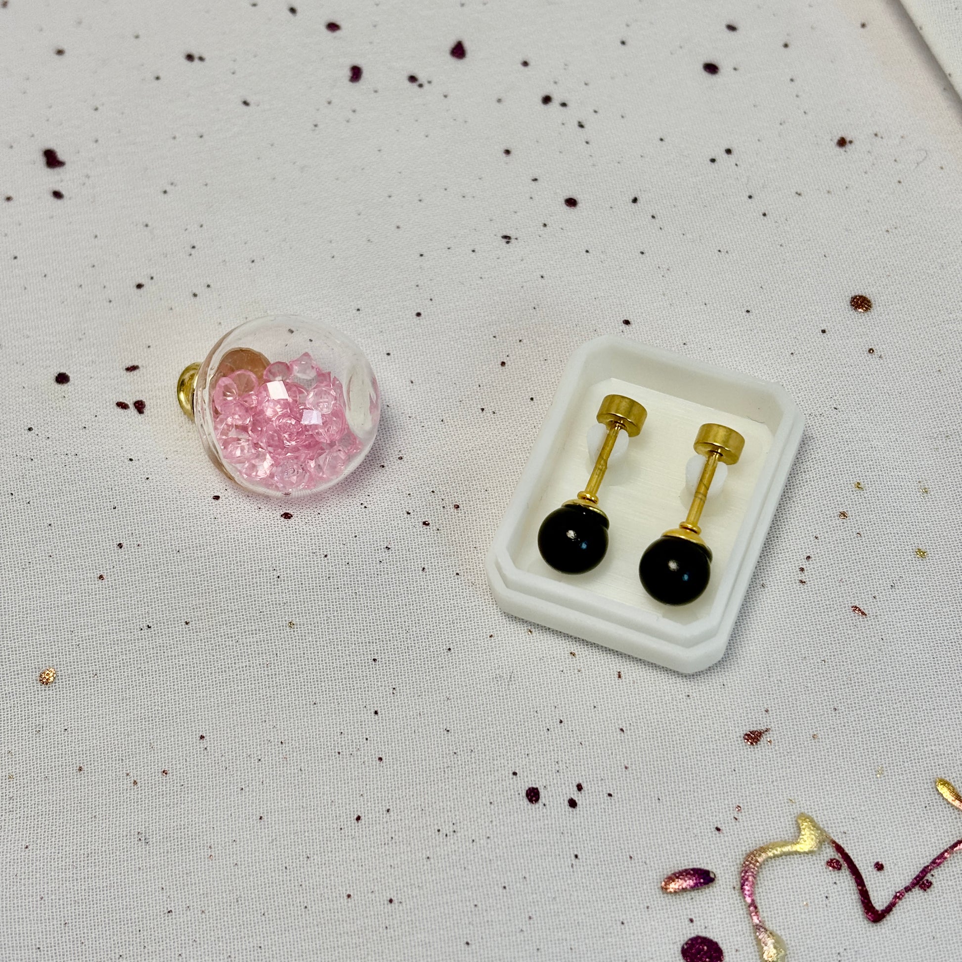 Mini Aros Acero Quirúrgico Dorado Perla Negra 6MM - Tope Tornillo