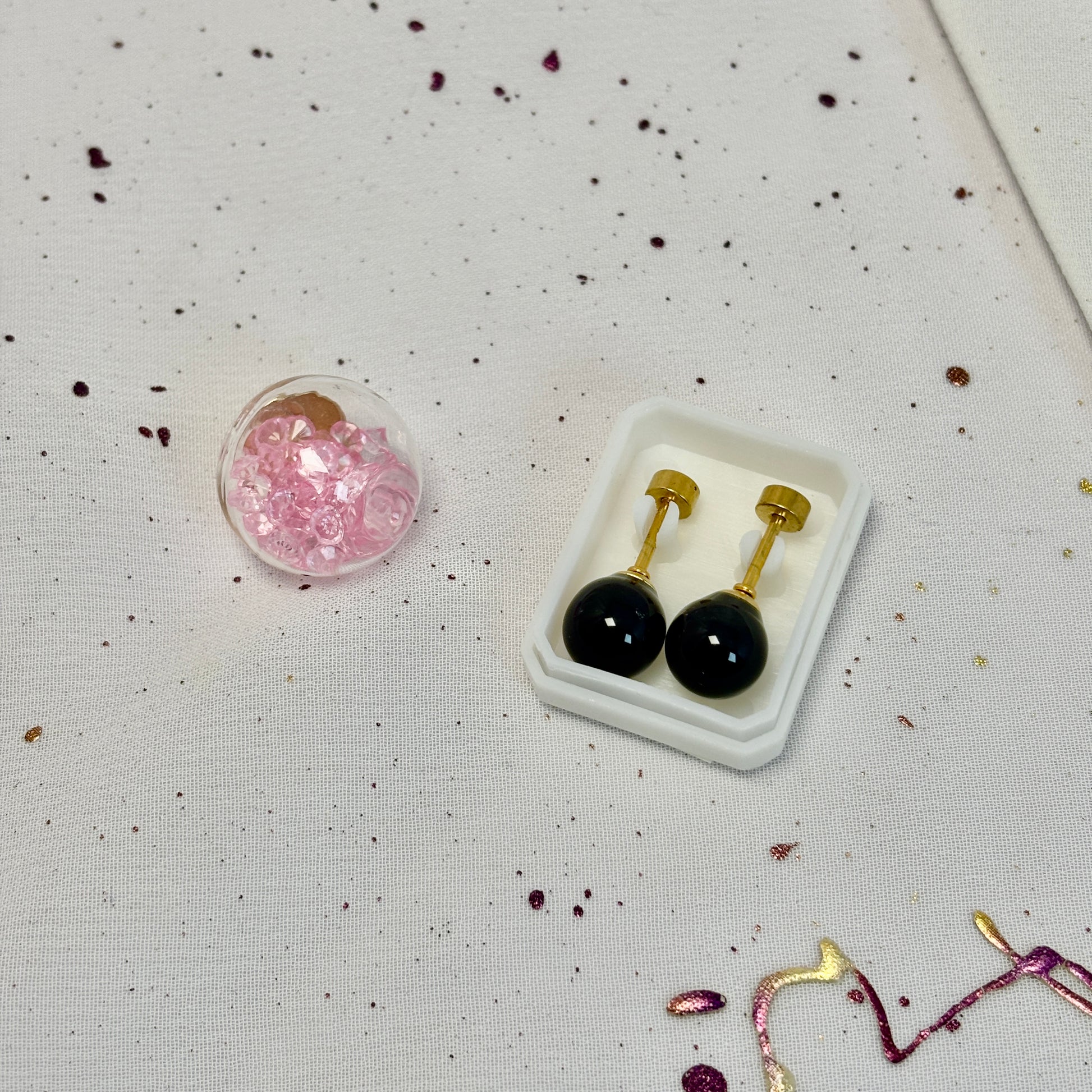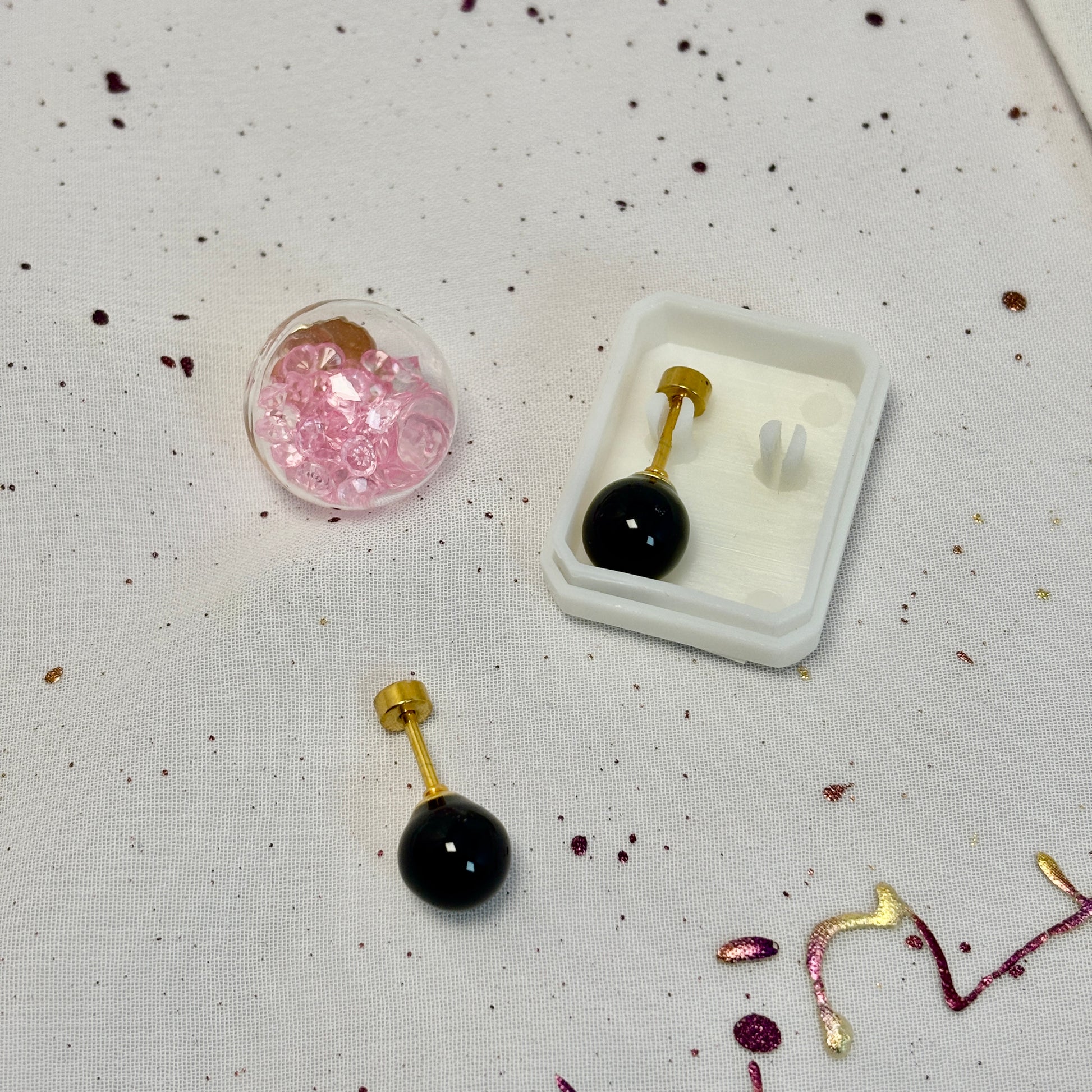 Mini Aros Acero Quirúrgico Dorado Perla Negra 8MM - Tope Tornillo