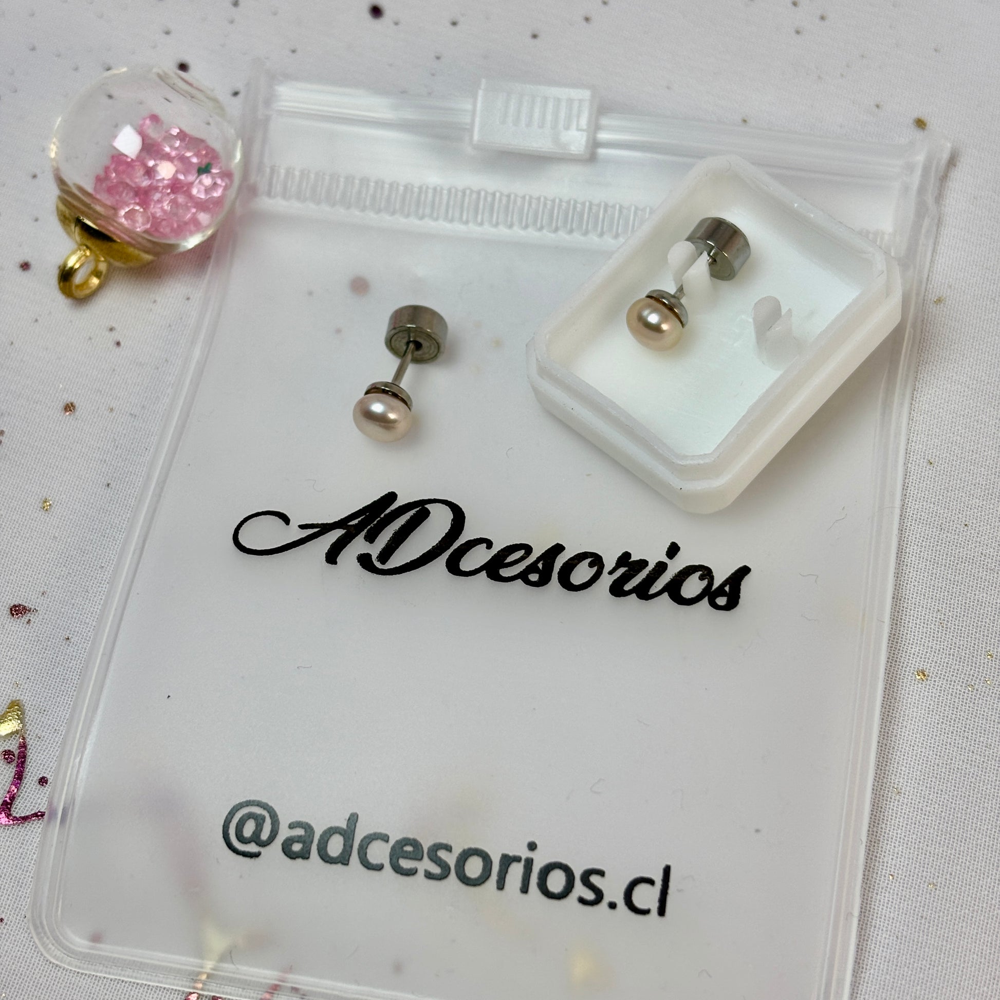Mini Aros Acero Quirúrgico Perla Nude - Tope Presión Abridor