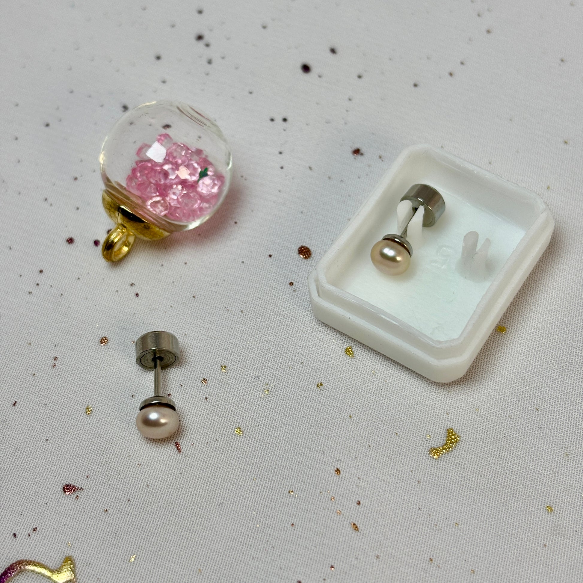Mini Aros Acero Quirúrgico Perla Rosa - Tope Presión Abridor