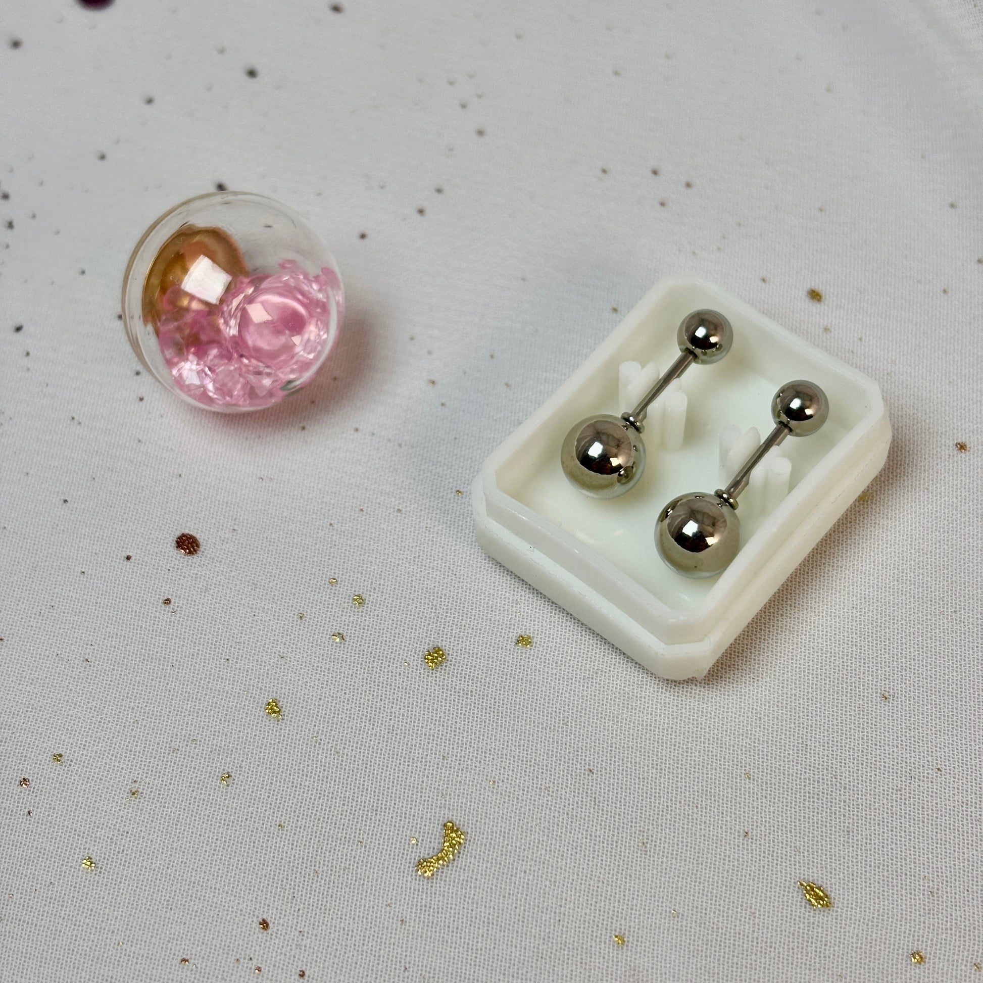 Mini Aros Acero Quirúrgico Plateado Doble Esfera 4MM - Tope Tornillo