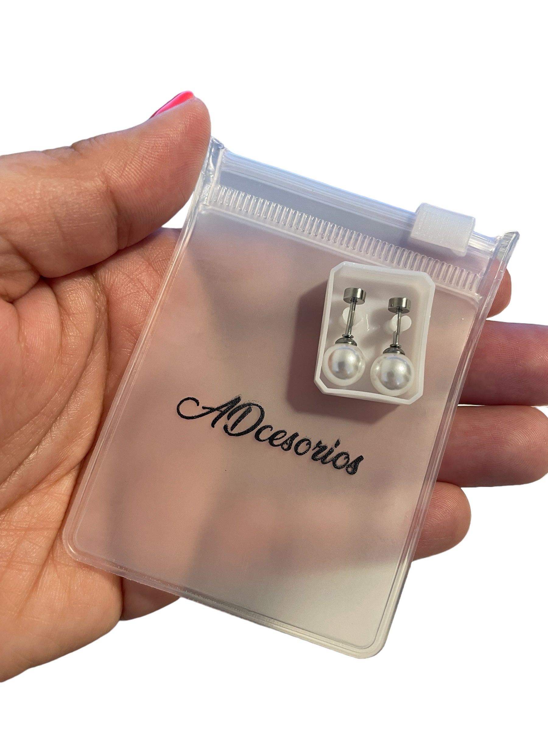 Mini Aros Acero Quirúrgico Plateado Perla 8MM - Tope Tornillo